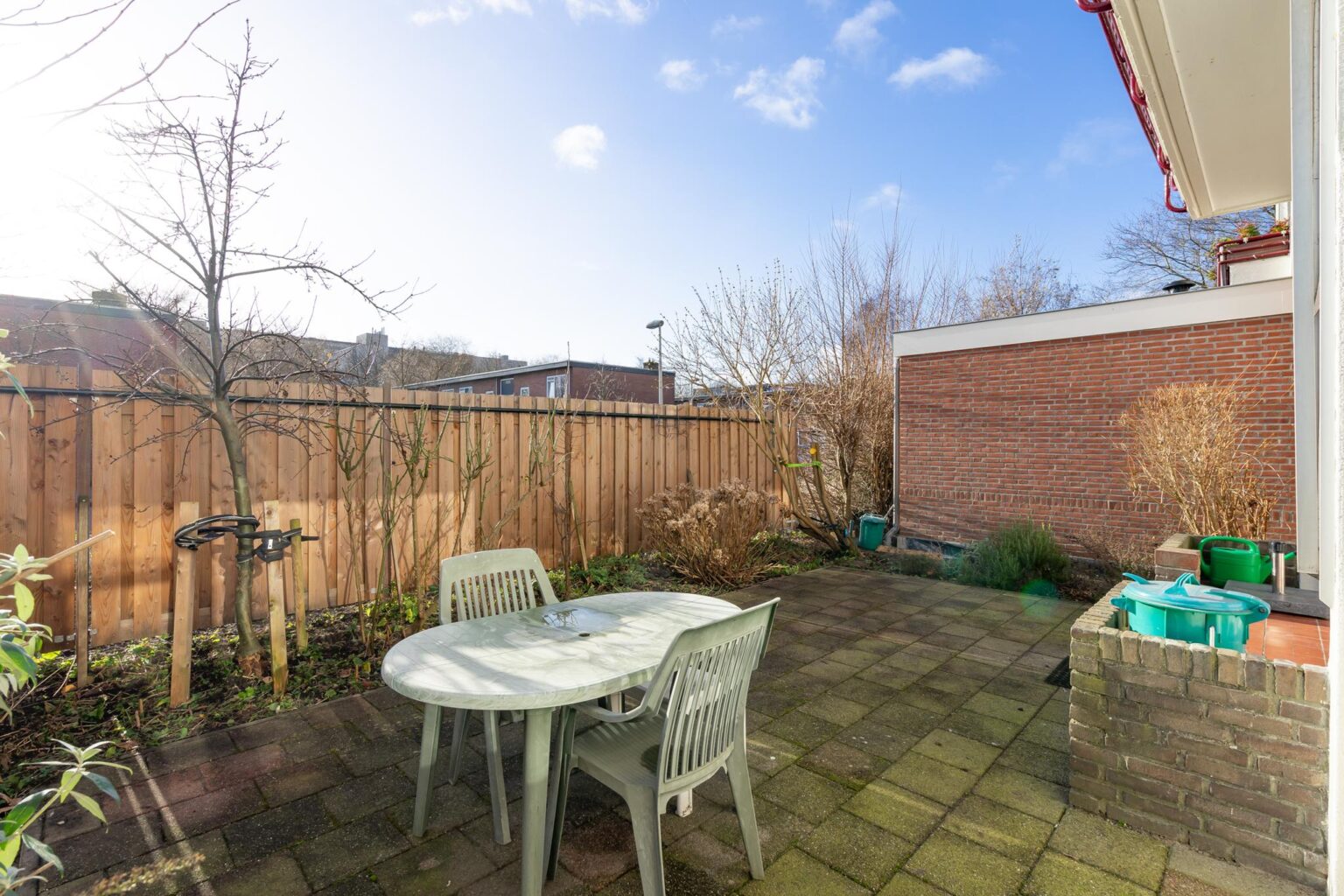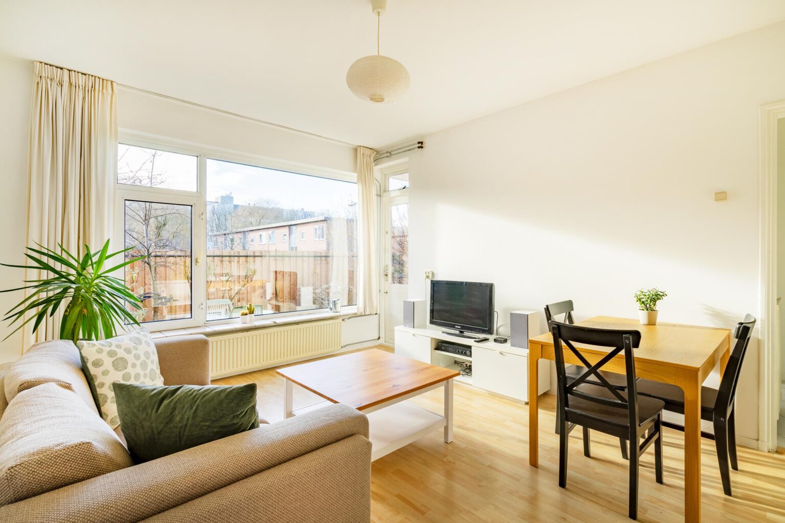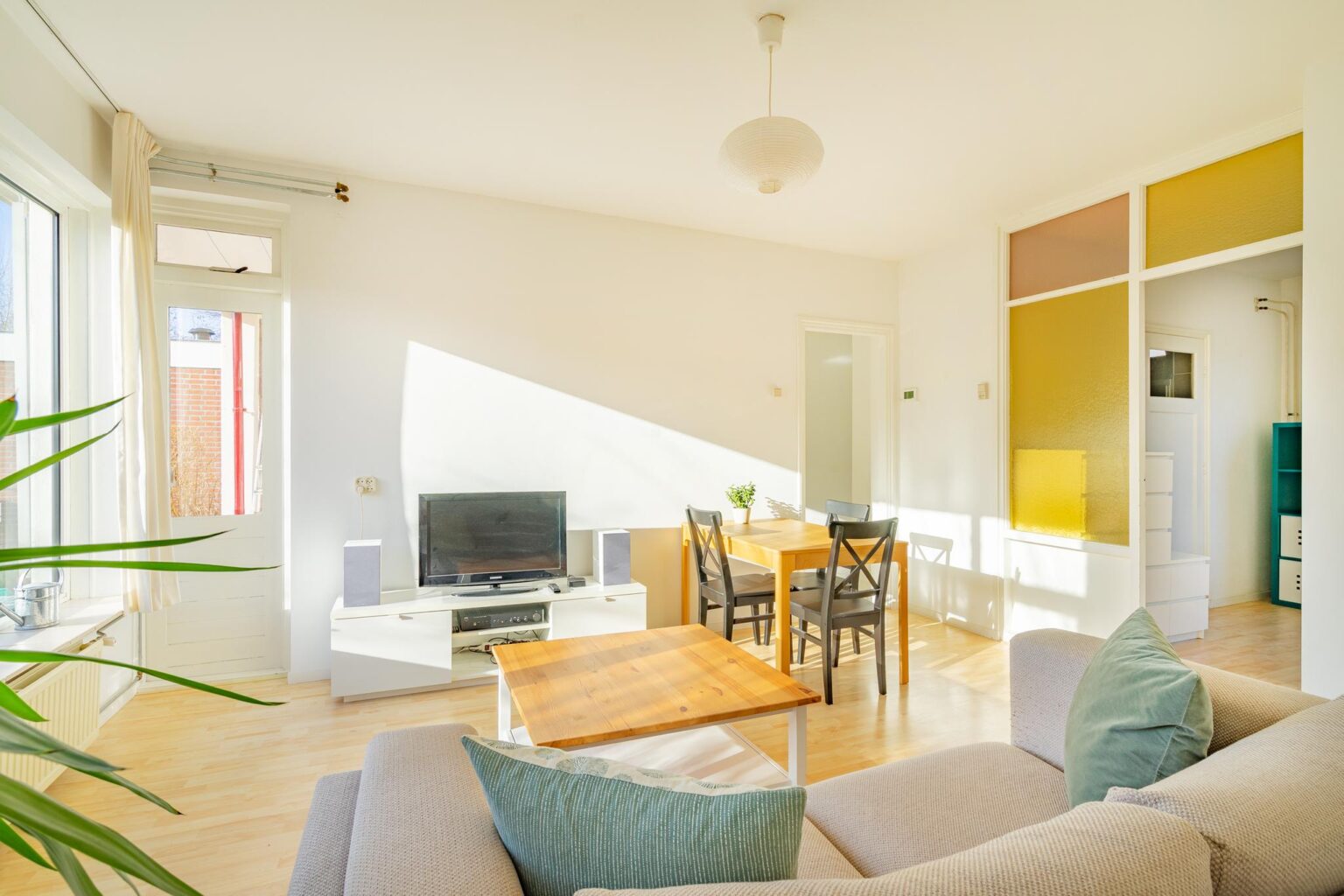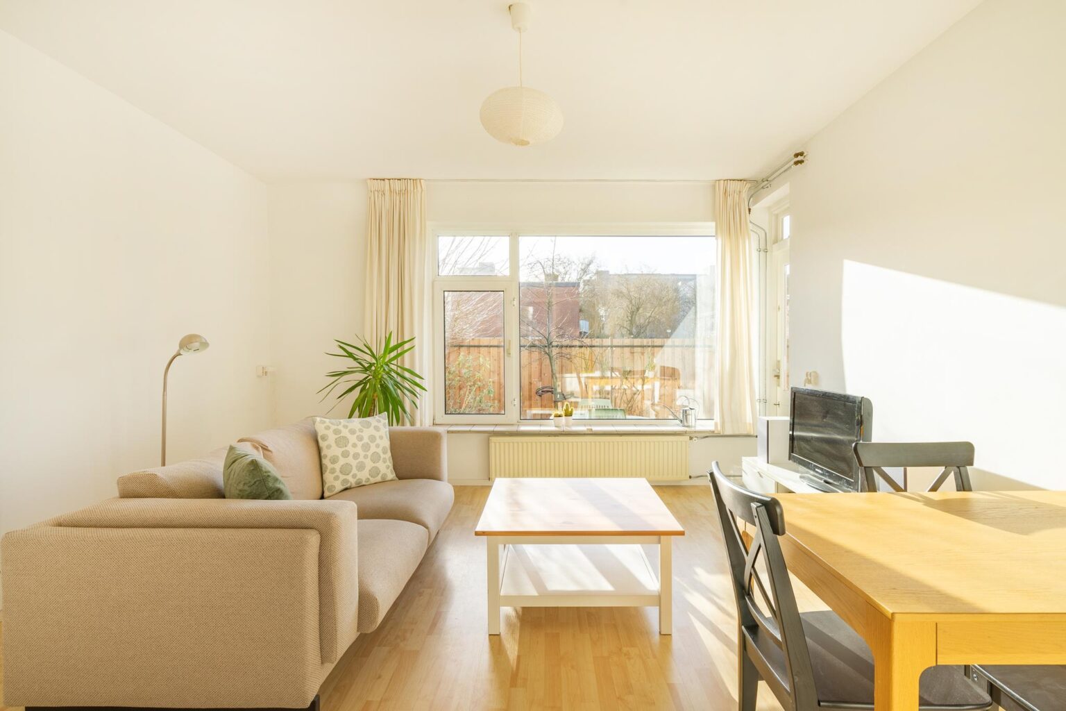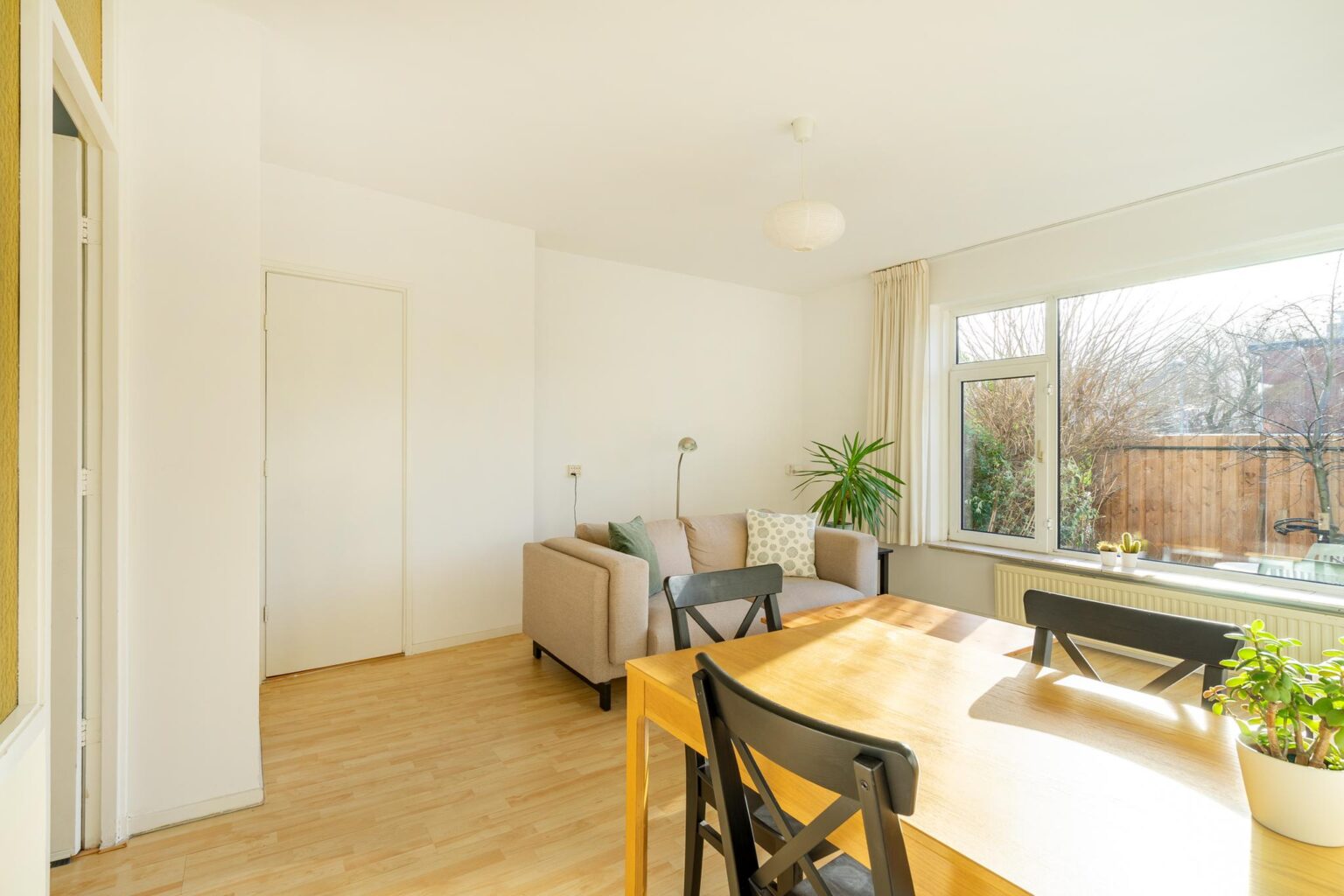 De lichte woonkamer is een heerlijke ruimte in huis. Via zowel de keuken als de woonkamer kan je de tuin van ca. 37m2 bereiken. Gelegen op het zuiden, dus veel zonuren!