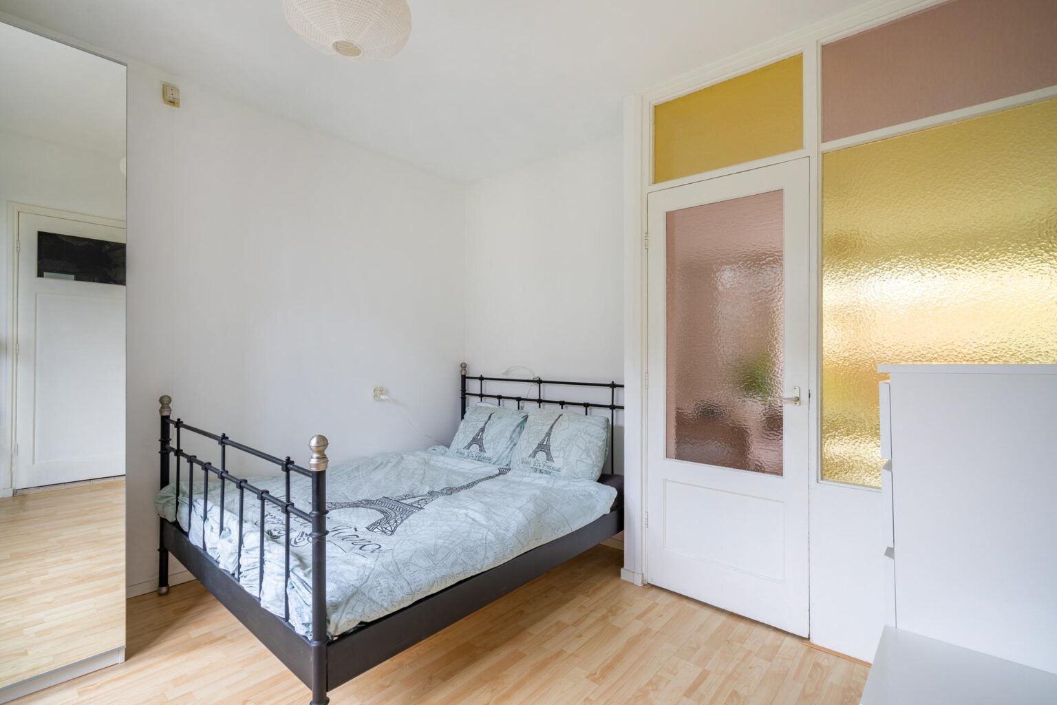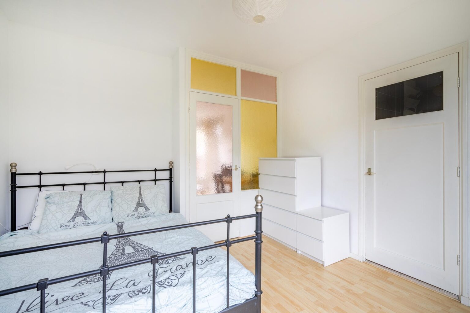 De slaapkamer is lekker ruim en biedt toegang tot de badkamer. Deze is voorzien van een douche en wastafel. Het toilet is separaat.