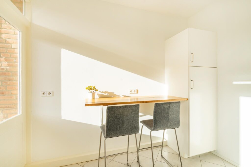 De lichte woonkamer is een heerlijke ruimte in huis. Via zowel de keuken als de woonkamer kan je de tuin van ca. 37m2 bereiken. Gelegen op het zuiden, dus veel zonuren!
