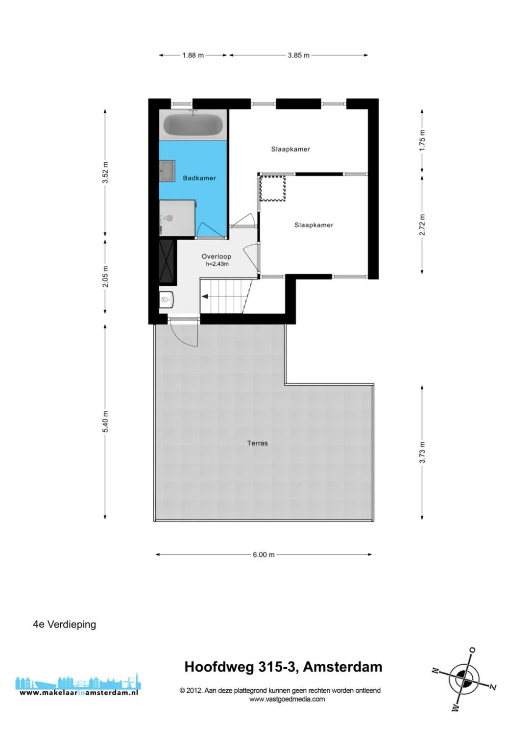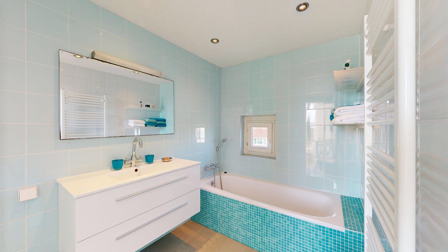 Op de vierde verdieping vind je de twee andere slaapkamers en de complete badkamer, voorzien van een inloopdouche, wastafelmeubel, ligbad en inbouwspotjes die de ruimte een verzorgde uitstraling geven.