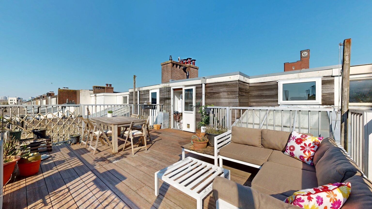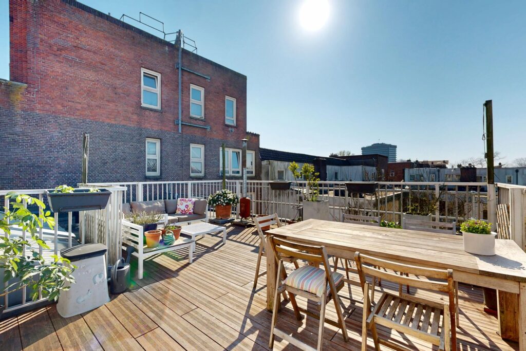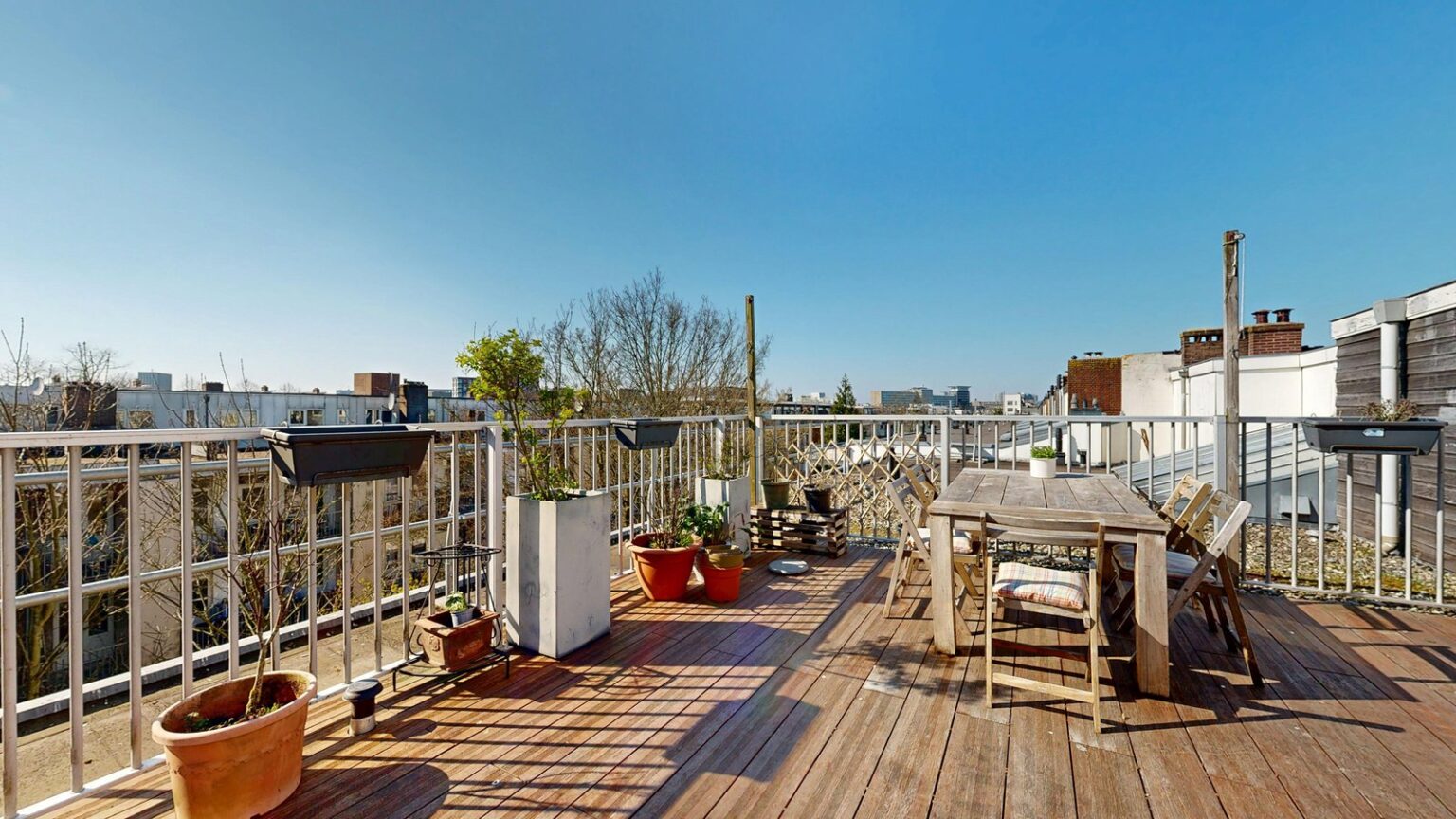 Het dakterras is zonder twijfel het pronkstuk van deze woning. Met een oppervlakte van 30m² is er meer dan genoeg ruimte voor een loungeset, eettafel en barbecue. Door de ligging heb je hier volop privacy — er zijn geen aangrenzende dakterrassen — en de zon laat zich hier de hele dag goed zien.