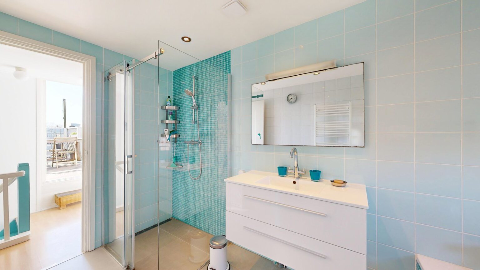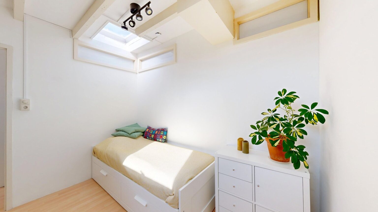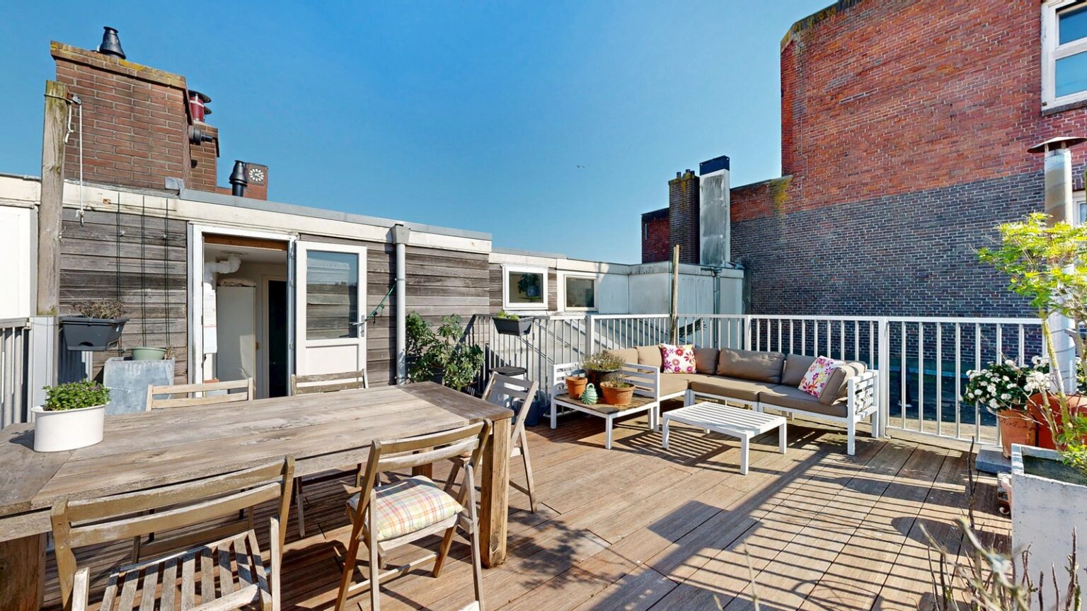Het dakterras is zonder twijfel het pronkstuk van deze woning. Met een oppervlakte van 30m² is er meer dan genoeg ruimte voor een loungeset, eettafel en barbecue. Door de ligging heb je hier volop privacy — er zijn geen aangrenzende dakterrassen — en de zon laat zich hier de hele dag goed zien.
