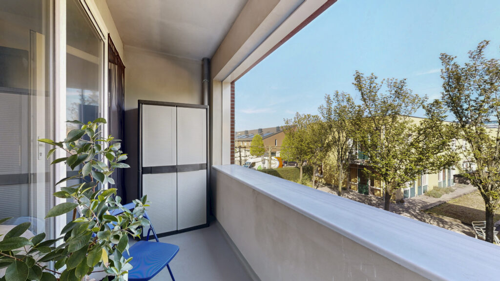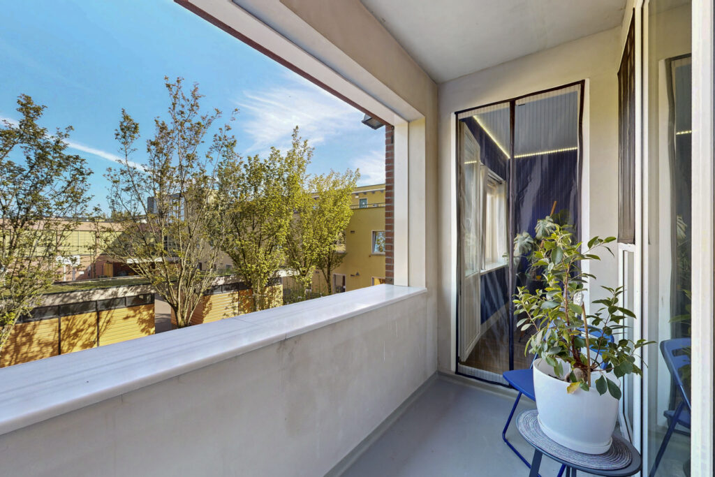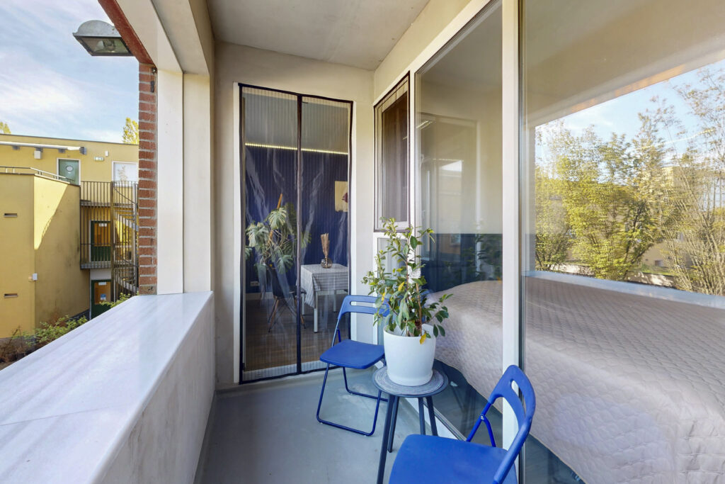 Vanuit zowel de woonkamer als de slaapkamer stap je zo het balkon op het oosten op. Hier pak je ’s ochtends de zon mee en zit je in de zomer juist lekker koel.