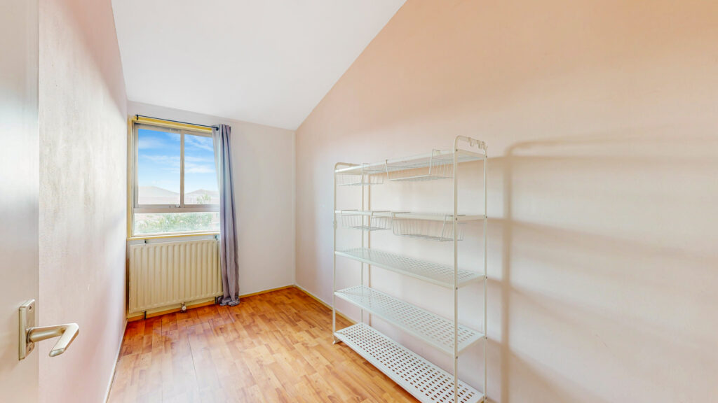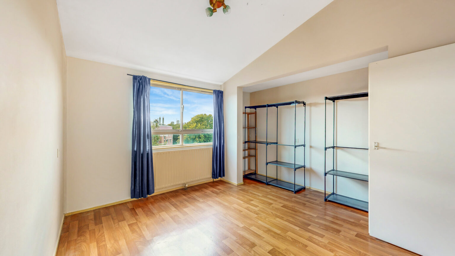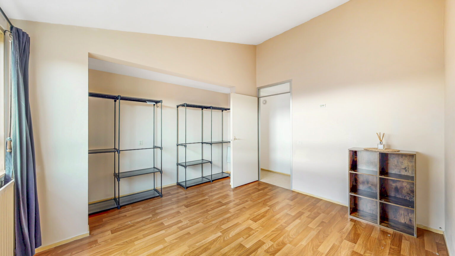 De hoofdslaapkamer is ruim opgezet met een fijne plafondhoogte en veel kastruimte. De tweede slaapkamer is ideaal als kinderkamer of thuiskantoor, en vanuit de derde slaapkamer stap je direct op het royale dakterras (zuidwesten), waar je van de zon en het vrije uitzicht kunt genieten.