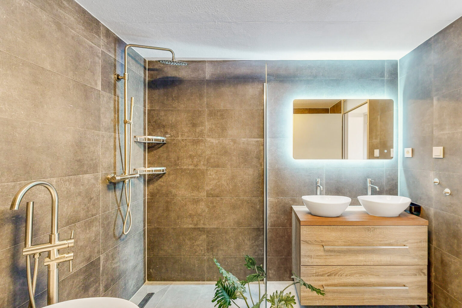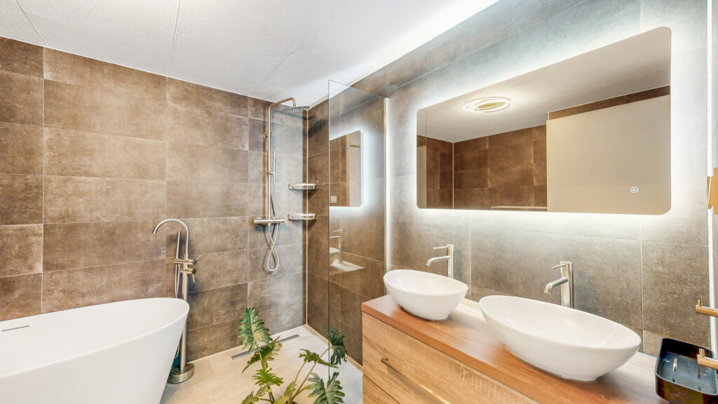 – luxe badkamer met ligbad en douche