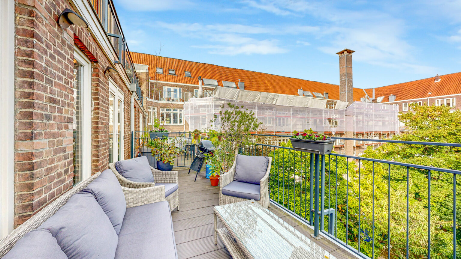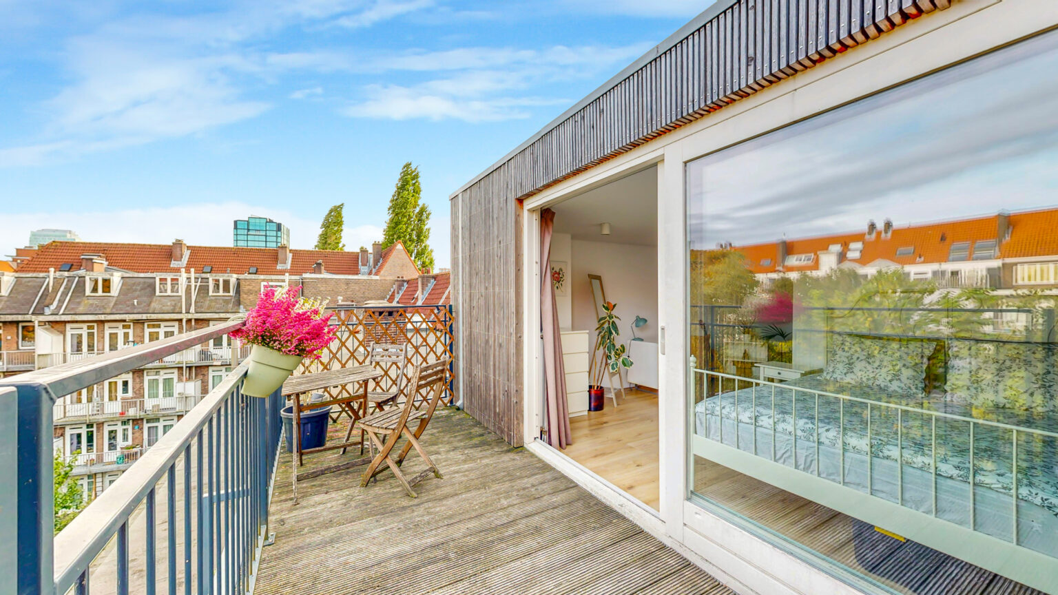 In de rustige Patroclosstraat, in de geliefde Stadionbuurt, tref je op nummer 5 dit ruime appartement op de bovenste twee verdiepingen. Twee zonnige terrassen, een ruime woonverdieping en een riante slaapkamer (desgewenst te splitsen in twee slaapkamers) maken dit tot een bijzonder fijn thuis.