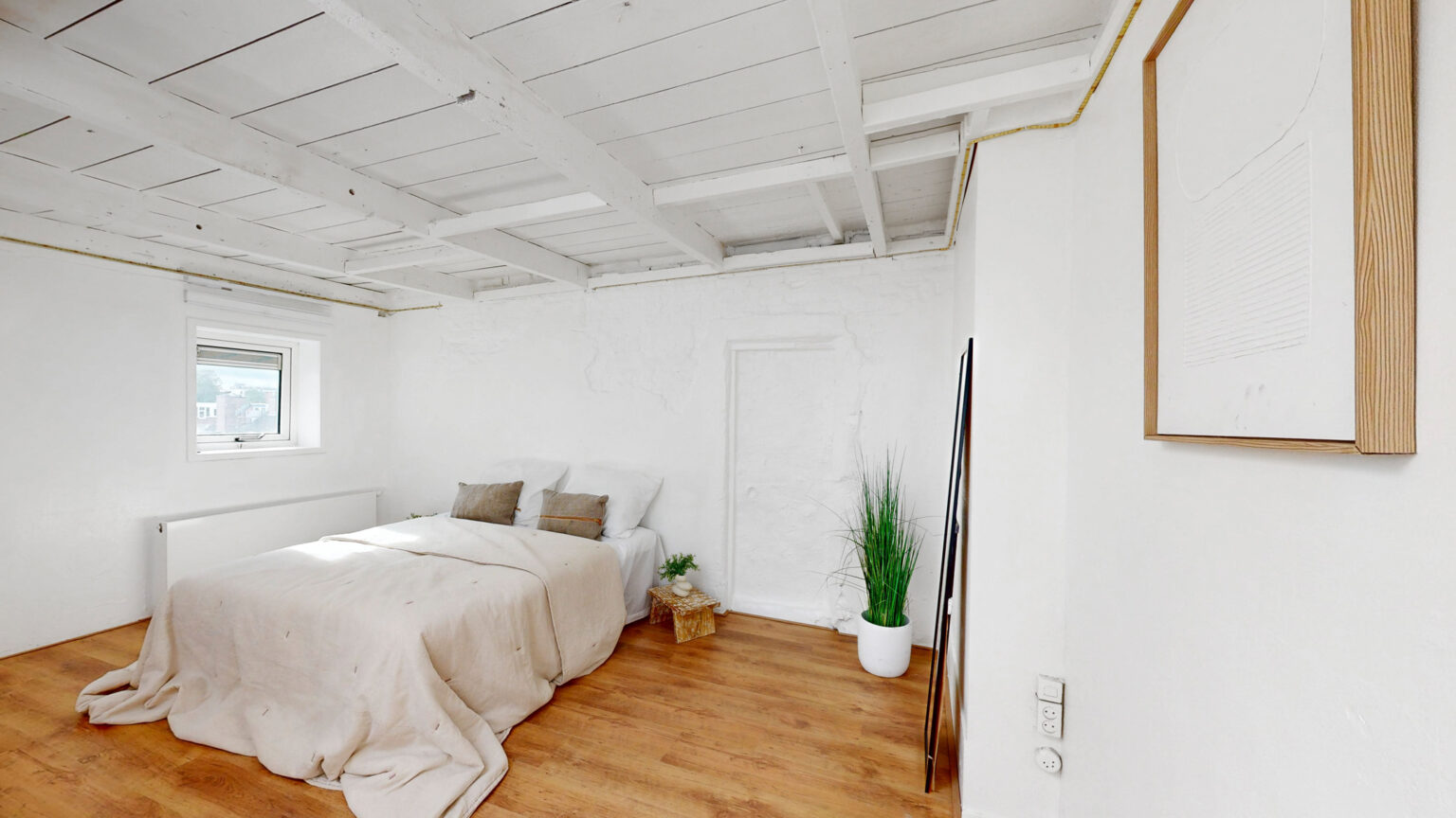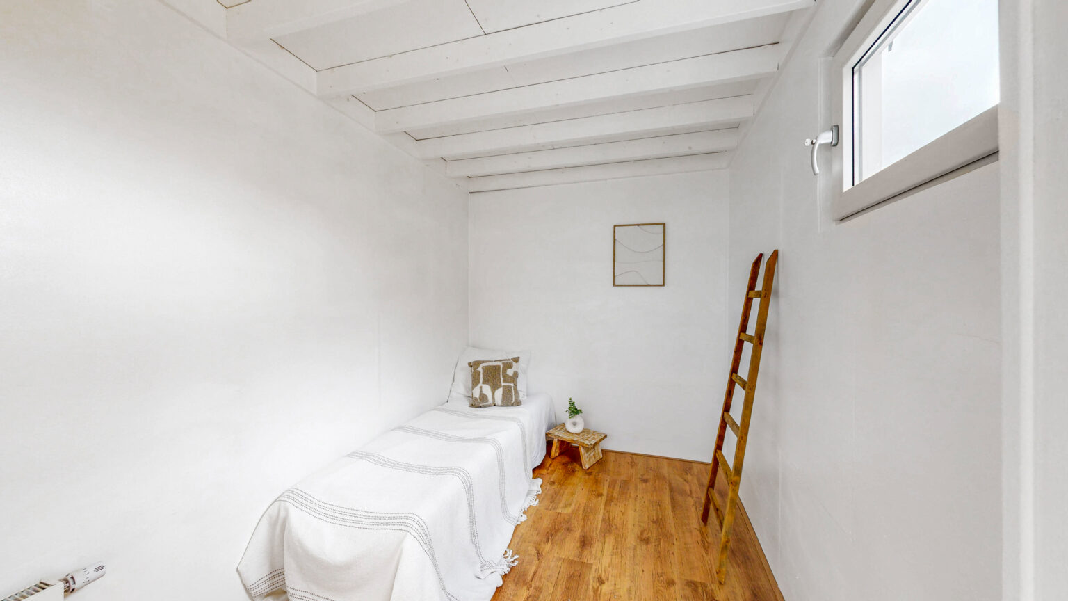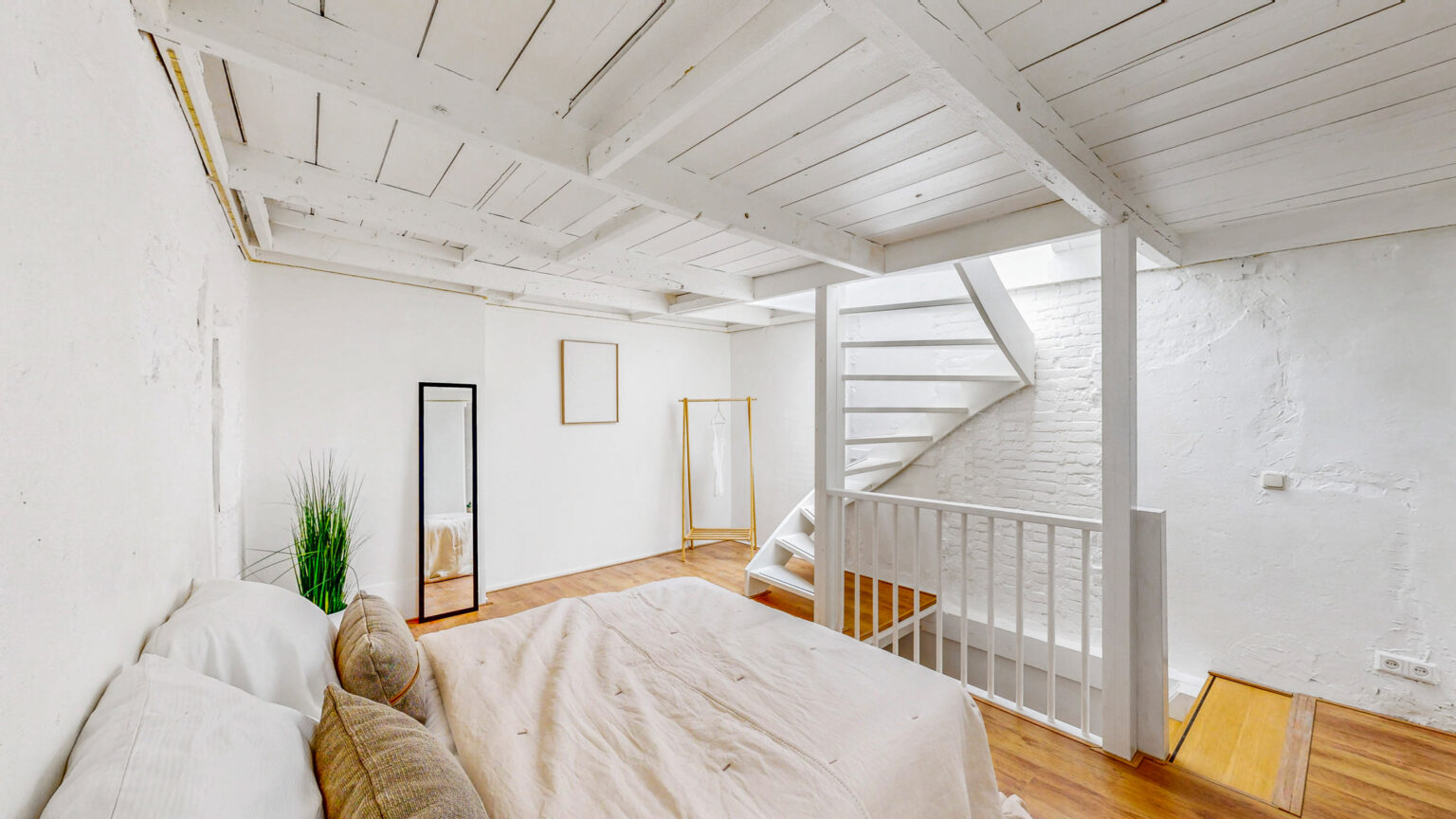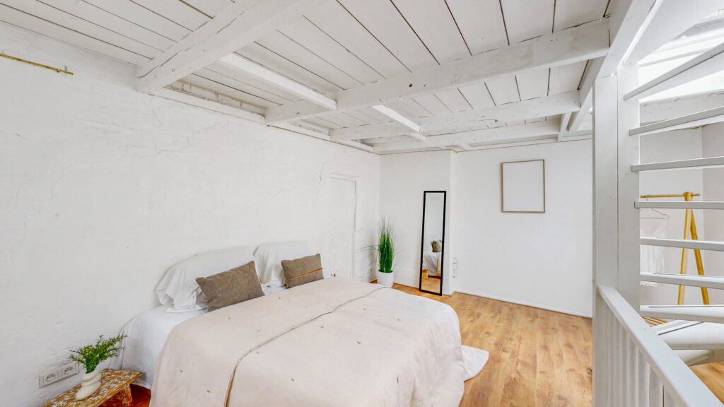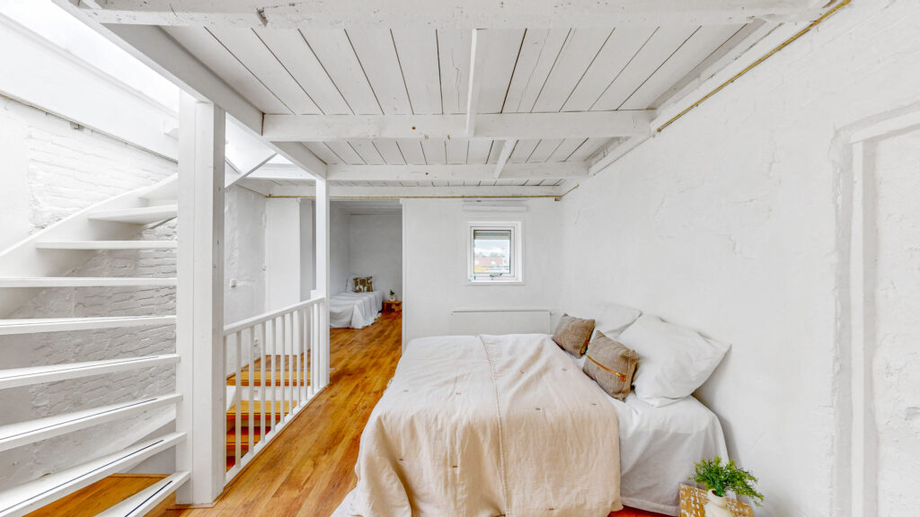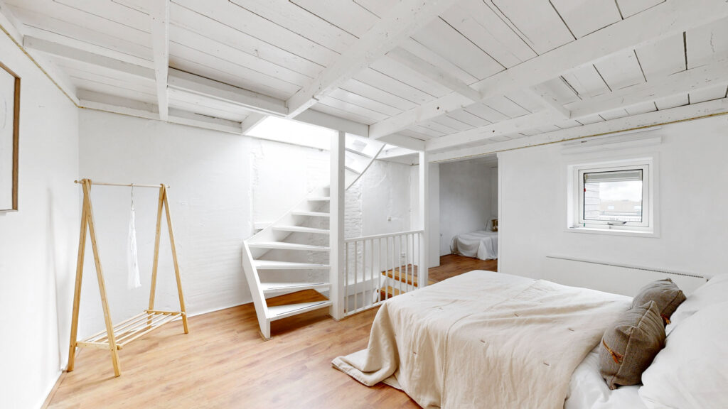 Een verdieping hoger is er de mogelijkheid om eenvoudig een tweede slaapkamer te creëren door een wand met deur te plaatsen. Het daklicht zorgt hier voor veel natuurlijk licht.