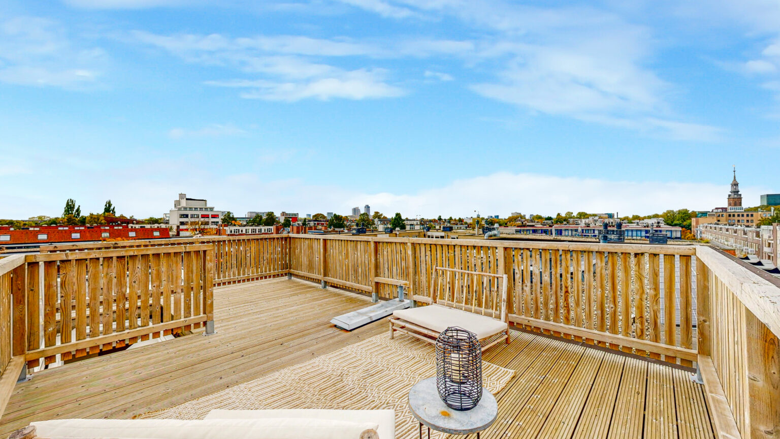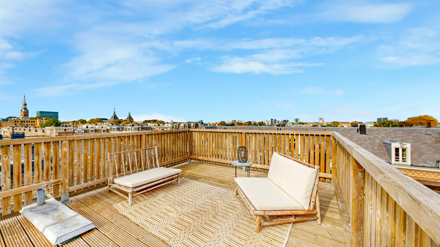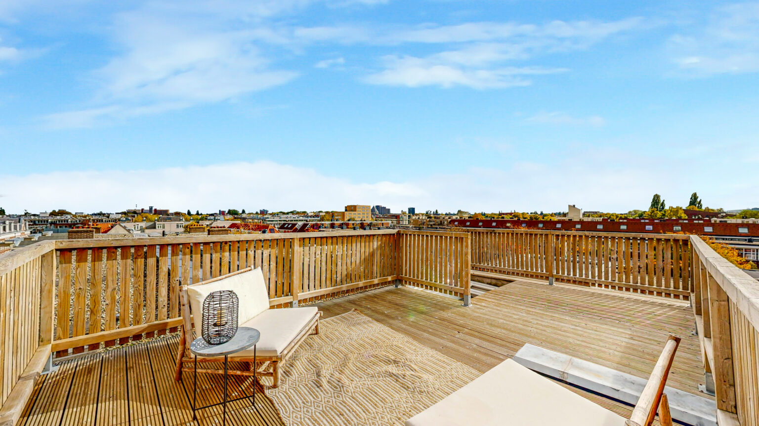 Via de vaste trap kom je op het heerlijke dakterras. Met voldoende ruimte voor een grote eettafel en een loungehoek is dit een fantastische plek om te ontspannen. Omdat er in de straat en omliggende panden vrijwel geen andere dakterrassen zijn, geniet je hier van optimale privacy.