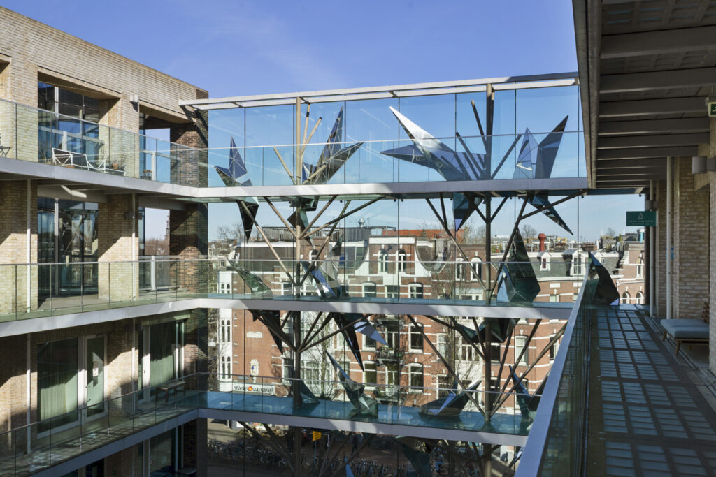The setting is too crazy. Located at the three-city point, namely Old West, downtown and Old South. A few minutes’ walk from Leidseplein and the ring of canals, around the corner from Museumplein and PC Hooftstraat, and with the bonus of the Vondelpark as your backyard. The neighborhood has a village character with a bakery, butcher and fishmonger in the street. The Albert Heyn is around the corner, you can drink coffee at the Koffie Salon and a beer at café Helmers or in one of the other many catering establishments.