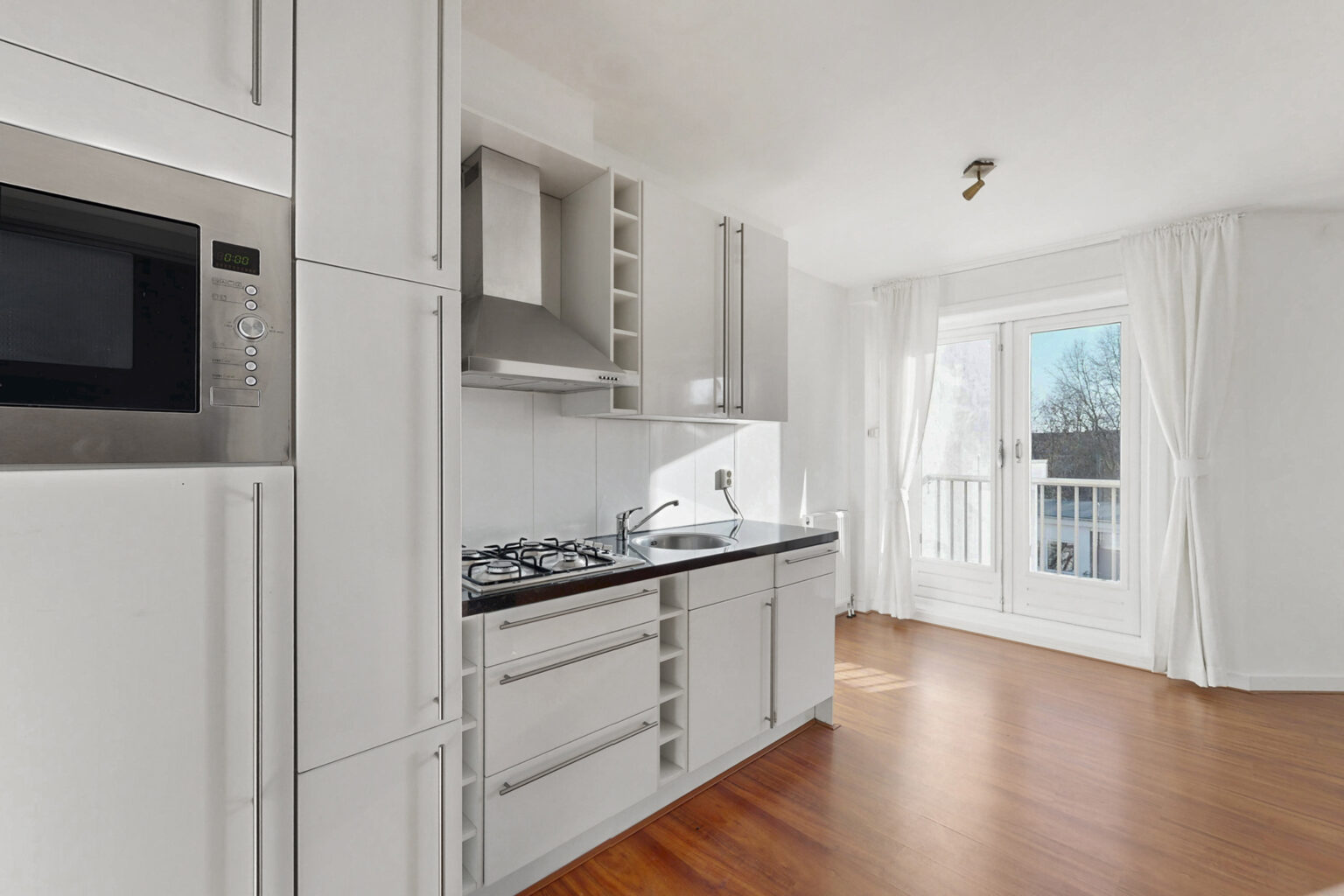 Het appartement is strak gestuukt en recent geschilderd. De woonkamer is lekker licht door de vele ramen. Zowel vanuit de woonkamer als het balkon op het zuiden heb je een vrij uitzicht. Ideaal dat je balkon toegankelijk is vanuit de woonkamer, zo wordt dit een verlengstuk van je woning op mooie dagen.